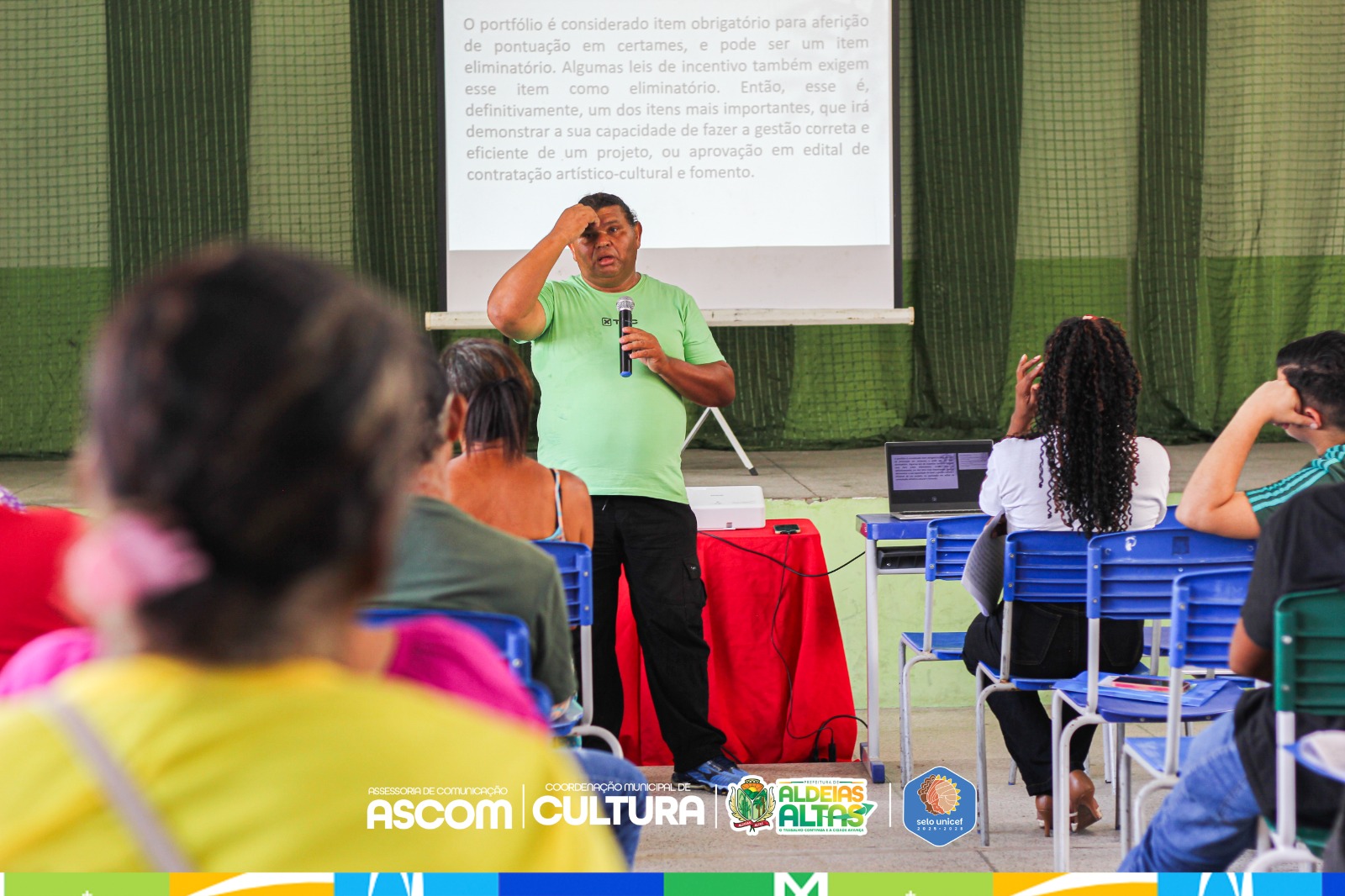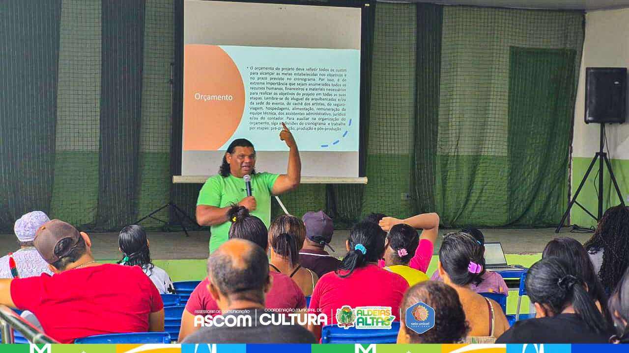 A Prefeitura de Aldeias Altas promoveu a Oficina de Elaboração de Projetos Culturais e Confecção de Portfólios, reunindo fazedores de cultura no Auditório da UE Antonieta Castelo para um momento intenso de capacitação e construção coletiva.